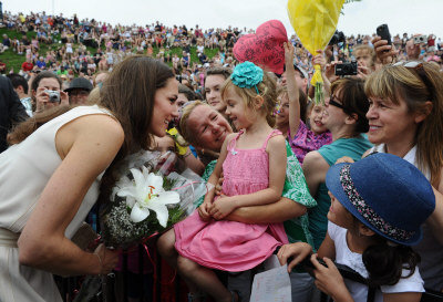 威廉王子伉俪结束了魁省两天之旅,3日下午乘机前往爱德华王子岛省查洛城(Charlottetown)。 两人3日下午在魁北克城(Quebec City)访问期间,与在场的民众进行近距离接触。数千人聚集在勒维斯城堡(Fort-Levis)内,威廉王子和凯特分别与一些民众打招呼。 威廉3日早上在魁北克城市政厅用法语演讲,称赞魁北克人充满活力。 ![]() 凯特(前左一)在参观魁北克城的魁省城堡时与民众接触。 ![]() 威廉王子(前右一)在参观魁北克城的魁省城堡时与民众接触。 威廉王子伉俪结束魁省访问后乘机前往爱省查洛城。图为两人抵达查洛城机场。 数百名魁独分子在市镇听外面举行反皇室示威,但示威在平和中举行。