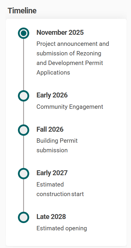 这类住房主要面向以下群体: 无家可归或即将无家可归的人; 受精神健康问题或药物依赖困扰的人群; 因身体障碍或健康状况难以独立生活者。 BC Housing表示,该项目致力于“为弱势群体提供稳定住所与健康支援服务”,服务内容包括24小时驻点人员、每日三餐、心理辅导、就业培训、以及药物安全使用指导等。 该地块目前为空置状态,产权归属本拿比市政府。 若项目推进,政府计划将土地租给BC Housing,但前提是必须完成一系列关键审批。这包括:更改土地用途规划、获取开发许可,并最终取得建筑许可。 目前,项目仍处于等待市政府审议与公众意见征集阶段。即便进展顺利,官方预计最早也需至2028年底才能完工入住。