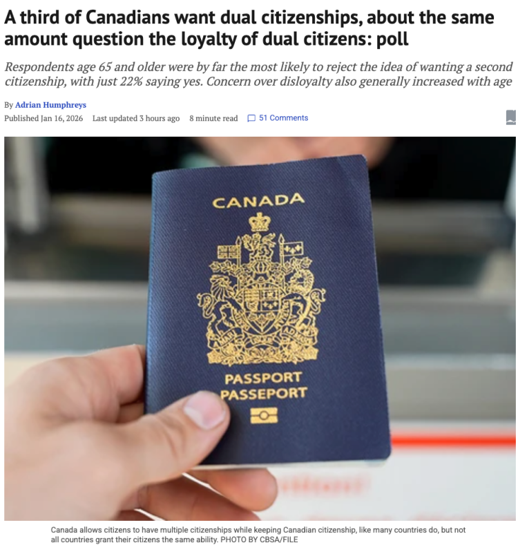 民意调查显示,个人对拥有双重国籍的兴趣因年龄和在加拿大的居住地而异。 年龄最大的受访者(65 岁及以上)最有可能反对获得第二国籍,只有 22% 的人表示同意,而高达 65% 的人表示不同意。 此外,随着年龄的增长,人们对国籍不忠的担忧也普遍增加。 这与年轻一代的看法截然不同。 在35至44岁的中年人群中,大多数人(51%)表示希望拥有双重国籍;34%的人表示反对。 最年轻的年龄组(18至24岁)的意见则较为分散,43%的人表示希望拥有双重国籍,37%的人表示反对,这一比例与25至34岁人群几乎相同。 45至54岁人群的态度则相反,37%的人表示希望拥有双重国籍,44%的人表示反对,这一比例与55至64岁人群几乎相同。 加拿大研究协会主席杰克杰德瓦布 (Jack Jedwab) 表示:“民意调查显示,许多加拿大人,尤其是年轻的加拿大人,对获得双重国籍表现出兴趣。他们认为双重国籍意味着更大的流动性、更多的机会,以及在互联互通的世界中跨境生活、工作或学习的能力。” 受访者的居住地在加拿大也很重要。民调显示,卑诗省居民最希望拥有双重国籍,而大西洋省份的居民最不愿意拥有双重国籍。 卑诗省受访者中,46%表示希望拥有双重国籍,34%表示不希望。而大西洋省份的受访者则持不同意见,只有28%表示希望拥有第二国籍,59%表示不希望。 阿尔伯塔省、曼尼托巴省/萨斯喀彻温省(民调机构将两省数据合并统计)的受访者中,35%表示希望拥有双重国籍,而阿尔伯塔省有50%的受访者和曼尼托巴省/萨斯喀彻温省有46%的受访者表示不希望拥有双重国籍。 安大略省的受访者中,40%表示希望拥有双重国籍,45%表示不希望。 在魁北克省,支持双重国籍的受访者比例为32%,反对者为52%。 与加拿大出生的受访者相比,更多移民对双重国籍感兴趣,这不难理解,他们中的大多数人与原籍国有着家庭或其他联系。 近一半(48%)的移民受访者表示希望拥有双重国籍,而非移民受访者中只有35%的人表示希望拥有不止一个国家的国籍。 在各个族裔群体中,白人对双重国籍的兴趣最低,只有35%的人希望拥有双重国籍。在中东裔受访者中,52%的人希望拥有双重国籍,其次是华裔受访者(46%)、南亚裔受访者(44%)以及其他族裔受访者(44%)。 尽管有很高比例的加拿大居民希望拥有双重国籍,但近三分之一的人对拥有双重国籍者的忠诚度存疑。 调查发现,31%的受访者认为拥有双重国籍的人对加拿大的忠诚度低于仅拥有加拿大国籍的人,而41%的受访者不同意这种观点。 “我认为(对忠诚度的质疑)反映了他们对目前加拿大跨文化关系的看法,或者说是他们的一个缩影,”杰德瓦布说道。“我们看到一些边境管制正在收紧,跨文化信任度正在下降,这引发了我们南部边境美国对双重国籍的质疑。” 最新数据显示,在加拿大出生的受访者对加拿大公民身份的重视程度高于在国外出生的居民:68%的非移民受访者认为加拿大公民身份是他们的首选,而持相同观点的移民受访者仅占62%。 按族裔划分,白人受访者对加拿大公民身份的热情最高,70%的人将其列为首选。其次是华裔受访者,占比63%。 南亚裔和中东裔受访者中,有一半人将加拿大公民身份视为首选,这一比例低于其他少数族裔受访者(57%)。 “为什么年轻受访者对公民身份的重视程度较低?我认为部分原因是,年轻一代不像年长一代那样将身份认同与公民身份紧密联系起来,”杰德瓦布说道。 “这算是他们对全球公民的一种理解。随着时间的推移,我们越来越发现公民身份与他们赋予公民身份的情感联系越来越紧密。” 这项在线调查于2025年12月19日至21日期间进行,共访问了1723名加拿大成年人。 |