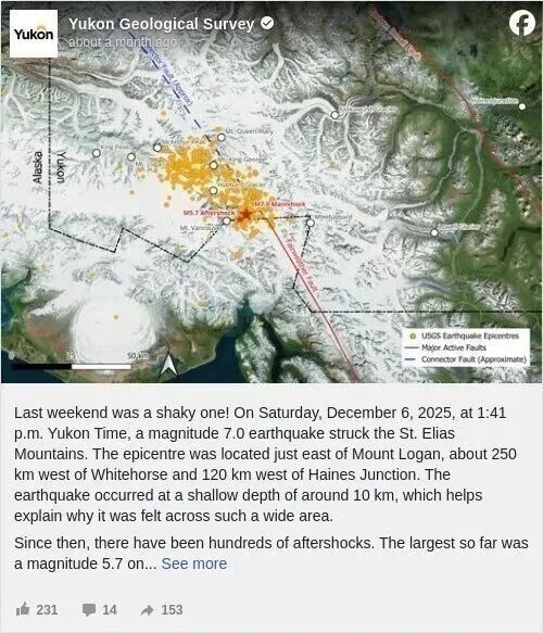 有居民说,床在晃,吊灯在摆,家里的东西发出细碎的响声,第一反应就是“这不对劲”。 主震过后不久,又跟着来了一次3.1级余震。美国国家气象部门一度启动了海啸预警,虽然很快解除,但这几个操作已经足够让人心跳加速。 真正让科学家紧张的,不只是“震了”,而是“震在哪”。 这次地震的位置,正好压在胡安·德富卡板块上,而这块板块,连着那条让整个太平洋西北地区夜不能寐的名字——卡斯卡迪亚俯冲带。 这是一条从温哥华岛一路向南,贯穿华盛顿州、俄勒冈州,直到加州北部的超级断层,全长将近700英里。 它之所以被称为“沉睡的巨人”,是因为它已经安静了三百多年,但学界几乎一致认为,它不是不动,而是在蓄力。 研究显示,一旦这条断层整体破裂,完全有能力制造出9级的超级地震。最新的研究甚至指出,在本世纪结束前发生一次毁灭性地震的概率几乎是“写在日历上的”,未来50年内的风险被估算为37%。 如果真到了那一天,沿海可能会出现高达30米的海啸,很多城镇连半小时的反应时间都没有。 而就在西海岸还在消化这场海底地震时,很多人忽然意识到,另一场“更诡异”的地震,其实离得并不远。 时间倒回到去年12月6日中午12点41分,阿拉斯加与育空交界附近发生了一场7级强震。震中位置偏远,但震感一点也不“低调”,布尔沃什兰丁、海恩斯章克申晃得最厉害,连250公里外的白马市,都有人感觉到明显摇晃。 一位当地居民回忆,当时她正在卧室,先是听到门在抖,还以为是邻居家洗衣机开太猛了。几秒钟后,震动突然升级,墙上的东西开始左右摆动,孩子一边哭一边找她。她说,那一刻真的以为房子要撑不住了。 幸运的是,育空地广人稀,这场强震并没有造成大规模破坏,更多是物品掉落、设施轻微受损。但在科学家眼里,这次地震的价值,远远超过“有没有塌房”。 震后不久,育空地质调查人员就乘坐直升机,反复飞越西南部的偏远山区,在克卢恩国家公园、乔治王山一带,看到了清晰的山体滑坡和雪崩痕迹。这些“写在山上的伤痕”,成了破解谜题的关键线索。 地震学家早就怀疑,育空西南角并不简单。这里是两大板块系统几乎以直角相交的地方,却长期缺乏直接证据,被称为地震研究的“盲区”。更奇怪的是,这次7级强震发生的位置,在过去几十年里几乎没有任何显著活动记录。 正因为这种“长期沉默”,从上世纪60年代开始,就有学者提出一种猜测:这里可能藏着一条连接北美板块边界和板块内部的巨大隐伏断层,只是一直没人能真正确认它的存在。 直到这次地震。 通过震后地形变化和持续的余震分布,研究人员终于“看见”了它。一个被埋藏了几十年的地质假说,被现实狠狠敲了一下章。 地震专家直言,7级地震本身就是极其巨大的能量释放,破裂带长度可能达到几十公里。如果发生在人口密集地区,后果完全不可想象。这次之所以没有演变成灾难,纯粹是因为位置偏远,而不是地震“手下留情”。 更让人警惕的是,这并不是结束。就在最近,当地又监测到新的小规模地震活动。全球多地的研究团队已经盯上这片区域,试图重新绘制地下断层结构,甚至不排除最终会确认出一组此前从未命名的新断层。 从育空的“隐形断层”被撕开,到西海岸外海的板块再次躁动,这一连串事件像是在提醒所有人:板块并不会因为人类忽视,就停止运动。 区别只在于,它什么时候选择动真格的。 来源:https://www.fox13seattle.com/news/6-0-magnitude-earthquake-oregon-coast |
