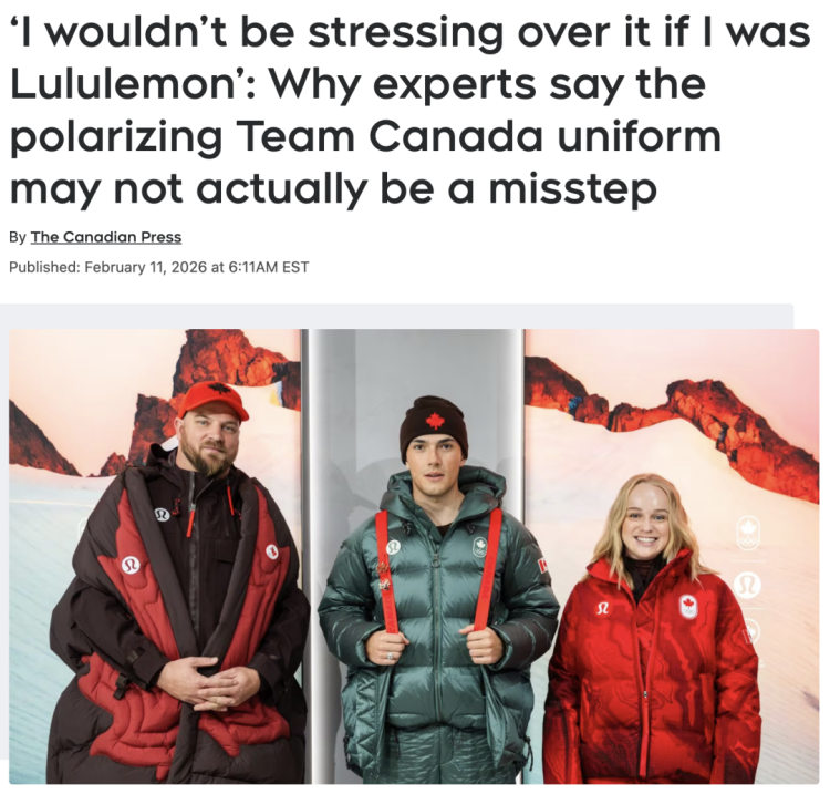 口碑两极分化:一边是“顶级时尚”,一边是“不够爱国” 虽然 TikTok 上到处都是吐槽“绿色款不够爱国”或者“街头风太重”的声音,但专业时尚圈和运动员们却给出了高评价。 时尚圣经《Vogue》杂志最近就将加拿大队评为本届冬奥“最佳制服”之一。花样滑冰选手利亚·佩雷拉(Lia Pereira)更是在 Instagram 上兴奋地展示她的开箱视频:“我真的还没准备好迎接这套这么酷的装备!Lululemon 你们超越了自己!” 不过,多伦多都会大学(Toronto Metropolitan University)时尚系的教授亨利·纳瓦罗·德尔加多(Henry Navarro Delgado)也提醒道,制服设计的研发成本极高,即便对 Lululemon 这样的巨头来说也是一笔不小的开支。“如果普通大众不喜欢也不购买,那么从商业逻辑上讲,这对品牌并不是好事。” 好在 Lululemon 与加拿大队的合同将一直持续到 2028 年洛杉矶夏季奥运会。对于现在的吐槽,官方选择“已读不回”,毕竟在奥运会这样转瞬即逝的流量高峰期,话题度本身就是一种胜利。 新闻来源: https://www.ctvnews.ca/lifestyle/article/i-wouldnt-be-stressing-over-it-if-i-was-lululemon-why-experts-say-the-polarizing-team-canada-uniform-may-not-actually-be-a-misstep/ |